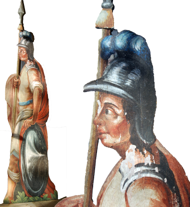 Einer von 2 Römern, die das Grab bewachen. Sie werden am Karsamstag entfernt. (Gesamtaufnahme und Ausschnitt).
